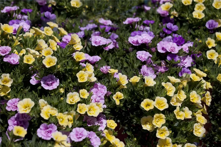 Blumenbeete in Blau und Violett